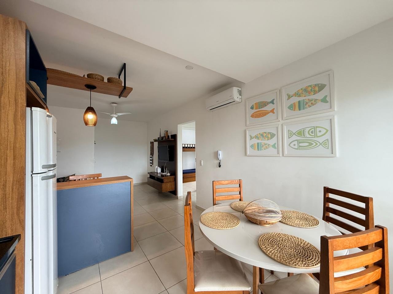 O apartamento possui 2 dormitórios, sendo 1 suíte, além de banheiro social, sala integrada à cozinha e varanda gourmet com churrasqueira. Além disso, conta com ar-condicionado na sala e nos quartos, garantindo conforto em todas as estações.