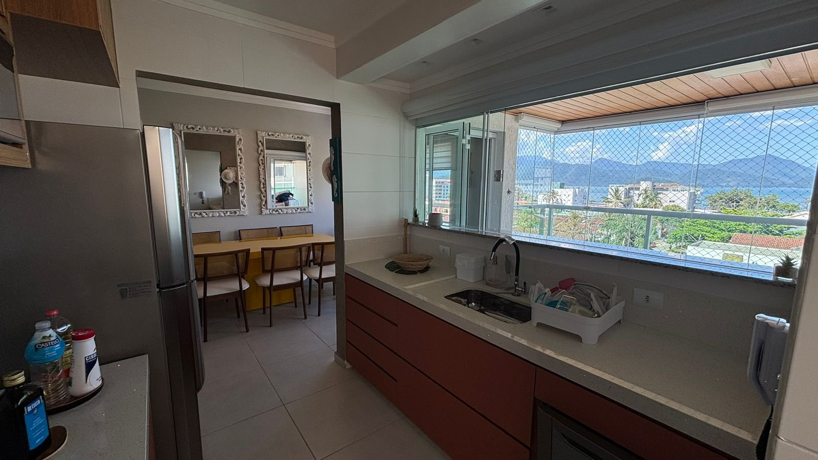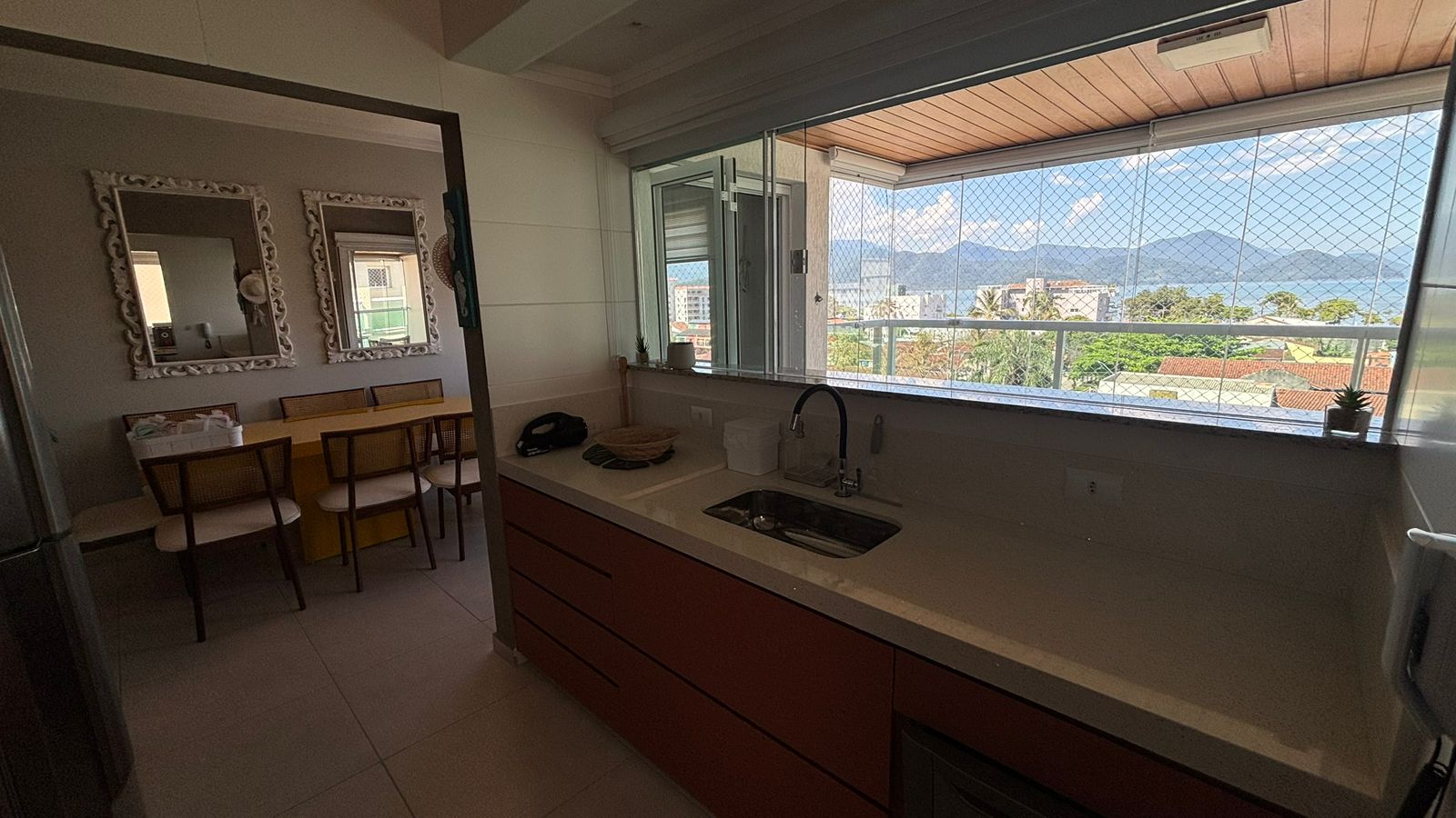 - Cozinha prática e funcional com vista mar