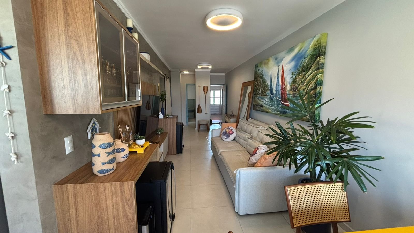 - Diferenciais: Vista panorâmica para o mar + mobiliada e decorada + armário náutico